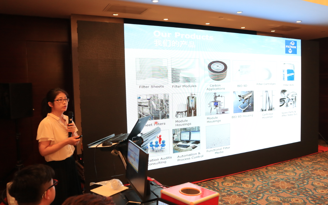 He Qun, Marketing Director of Filtrox, gave a keynote speech on “Clarification Filtration of High Density Culture/Fermentation Broth”